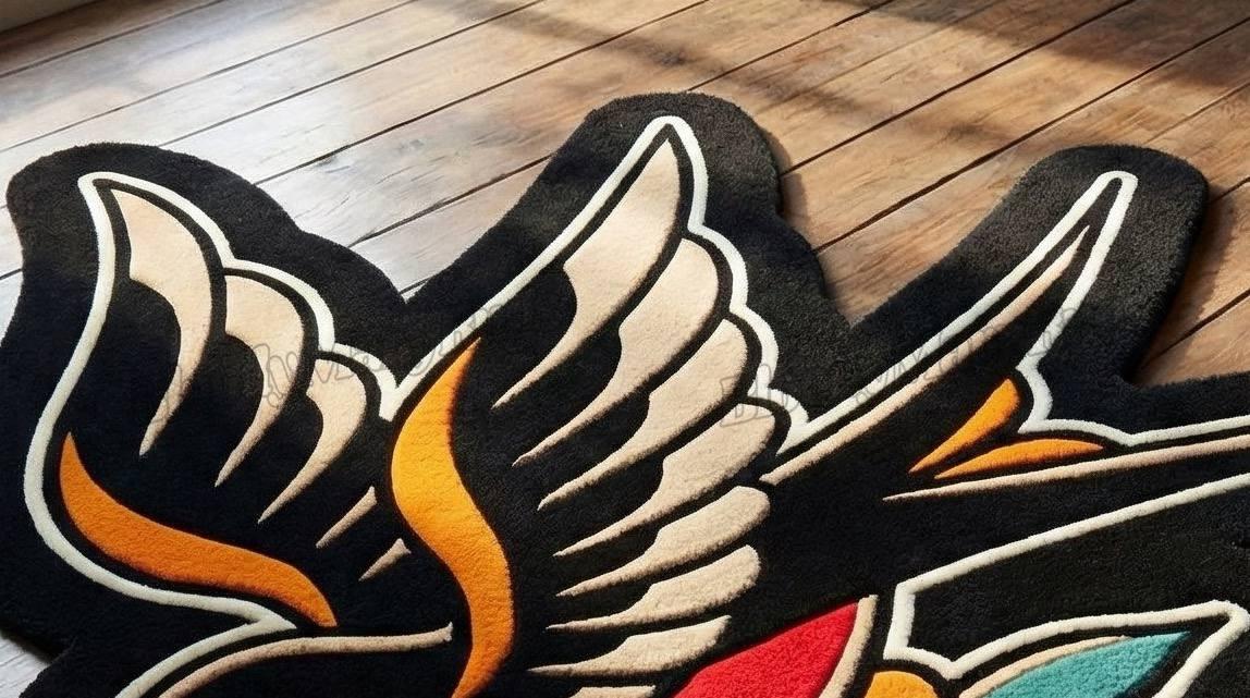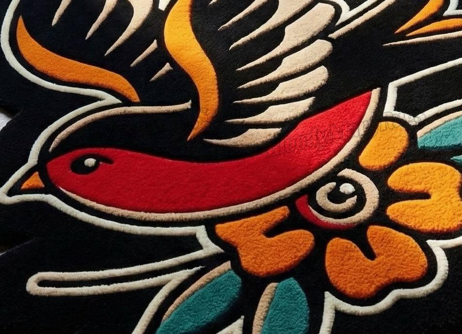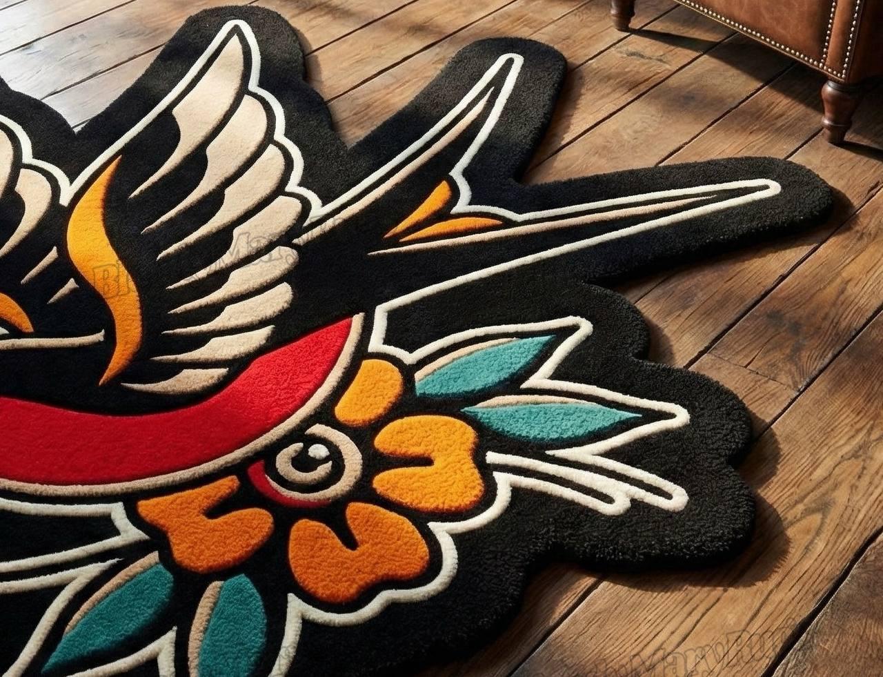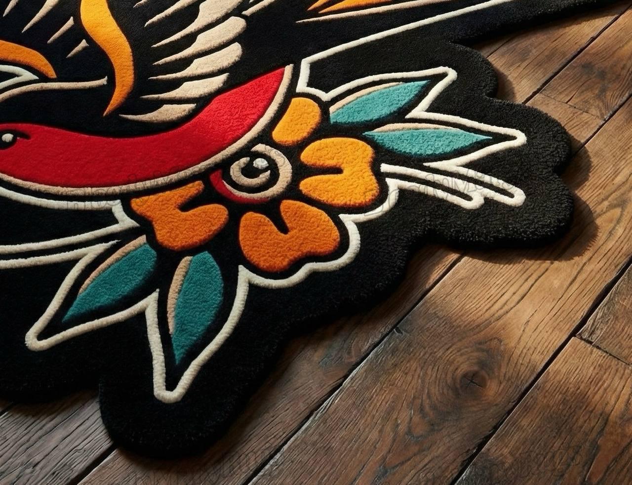 The Flying Sparrow Rug is a bold handmade tufted carpet with a striking bird-and-flower design that will make your space come to life. Extremely soft, long-lasting, resistant to fading, and ideal for modern interiors, studios, and bedrooms.
