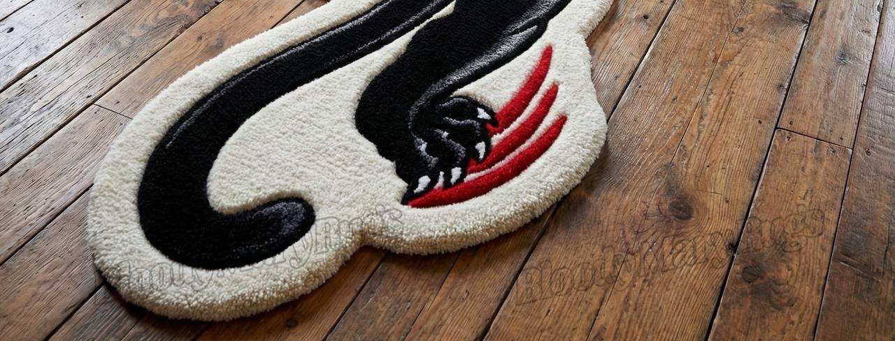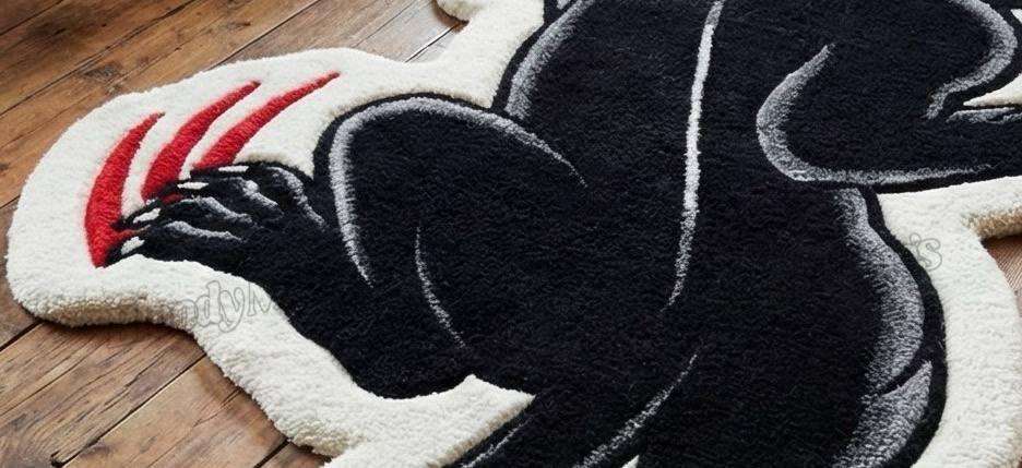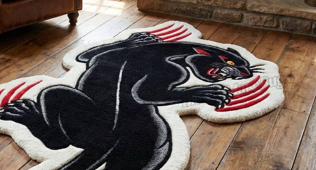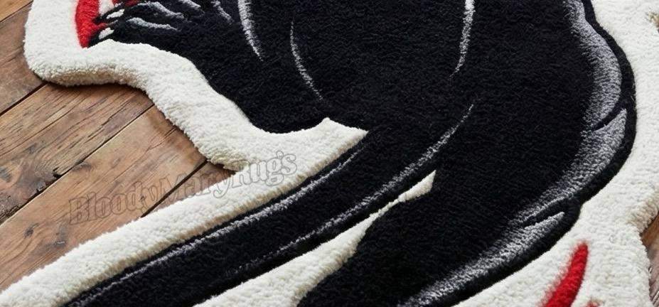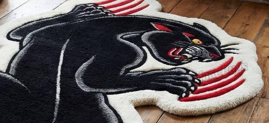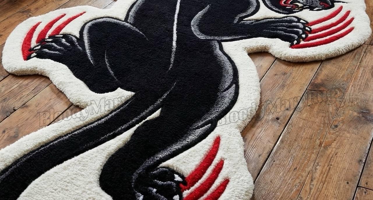 Designed on a striking ivory base, the panther’s midnight-black body coils with tension like it's ready to leap off the floor. Sharp red claw marks slash across the rug, adding that bloody, rebellious attitude that defines the BloodyMary aesthetic. Each curve, line, and gradient is carved with deep hand-tufted texture, giving the panther a life-like movement that catches light from every angle.