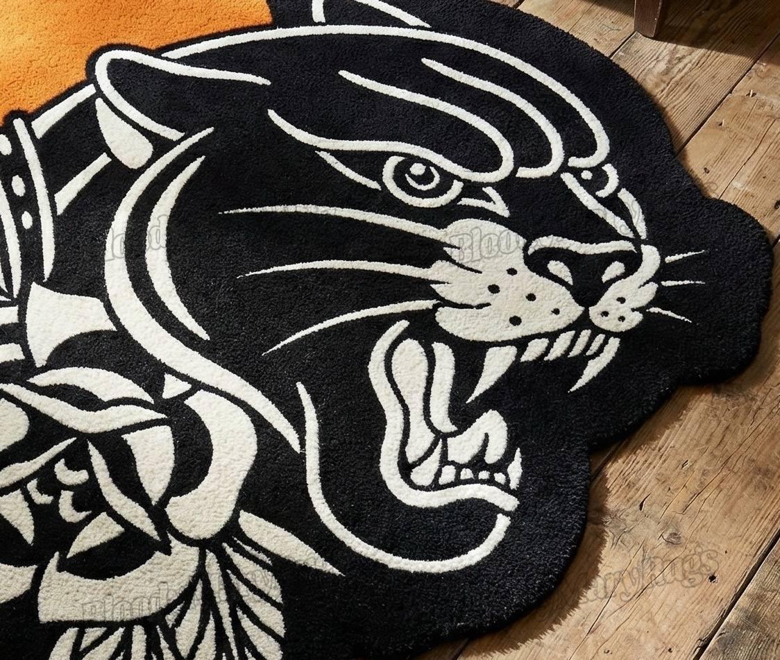 Meet the Black Panther Tattoo Rug a handcrafted, custom-shaped masterpiece for the people who don’t follow trends… they create them.