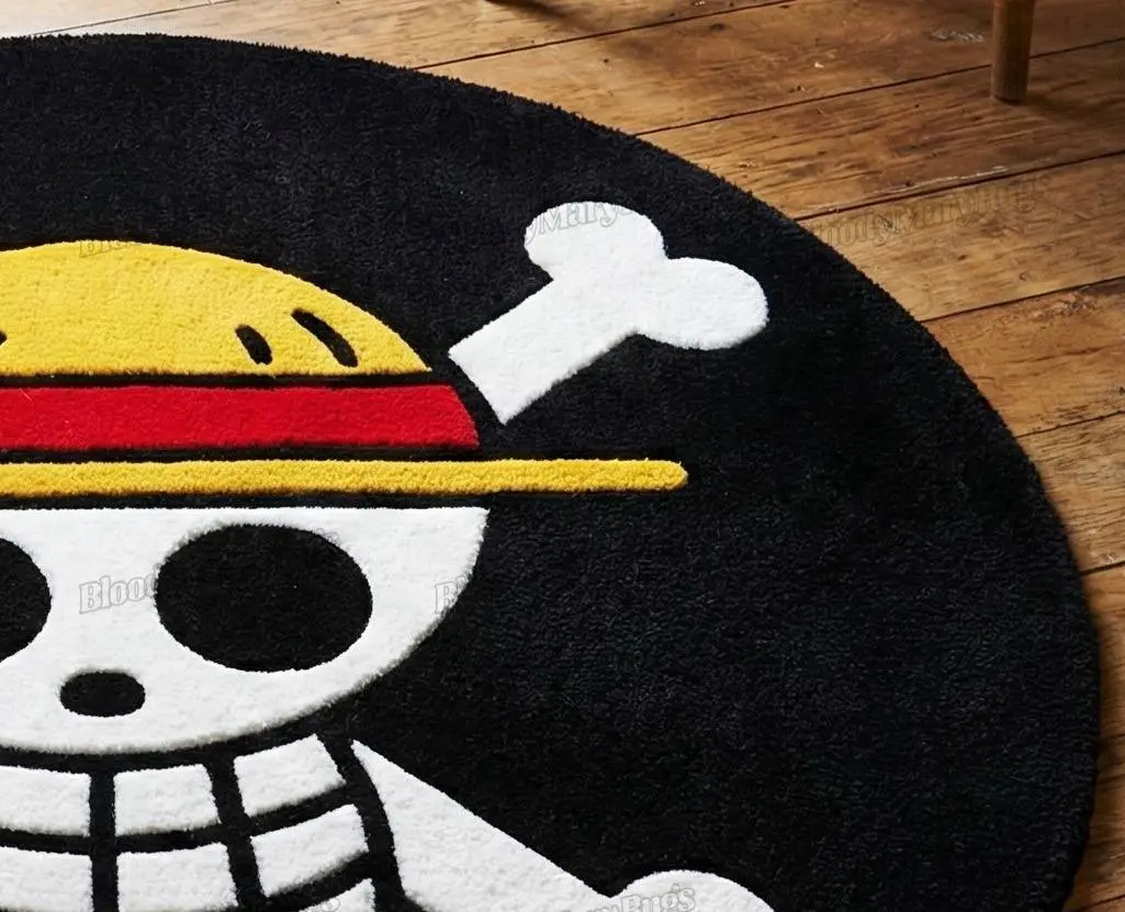 Because the rug is fully round, it feels intentional wherever you place it – beside your bed, under a coffee table, in front of your gaming chair or right in the middle of a small room. The thick black background makes the white bones and straw hat colours glow, instantly making the space look more curated and high‑end than the price would ever suggest.