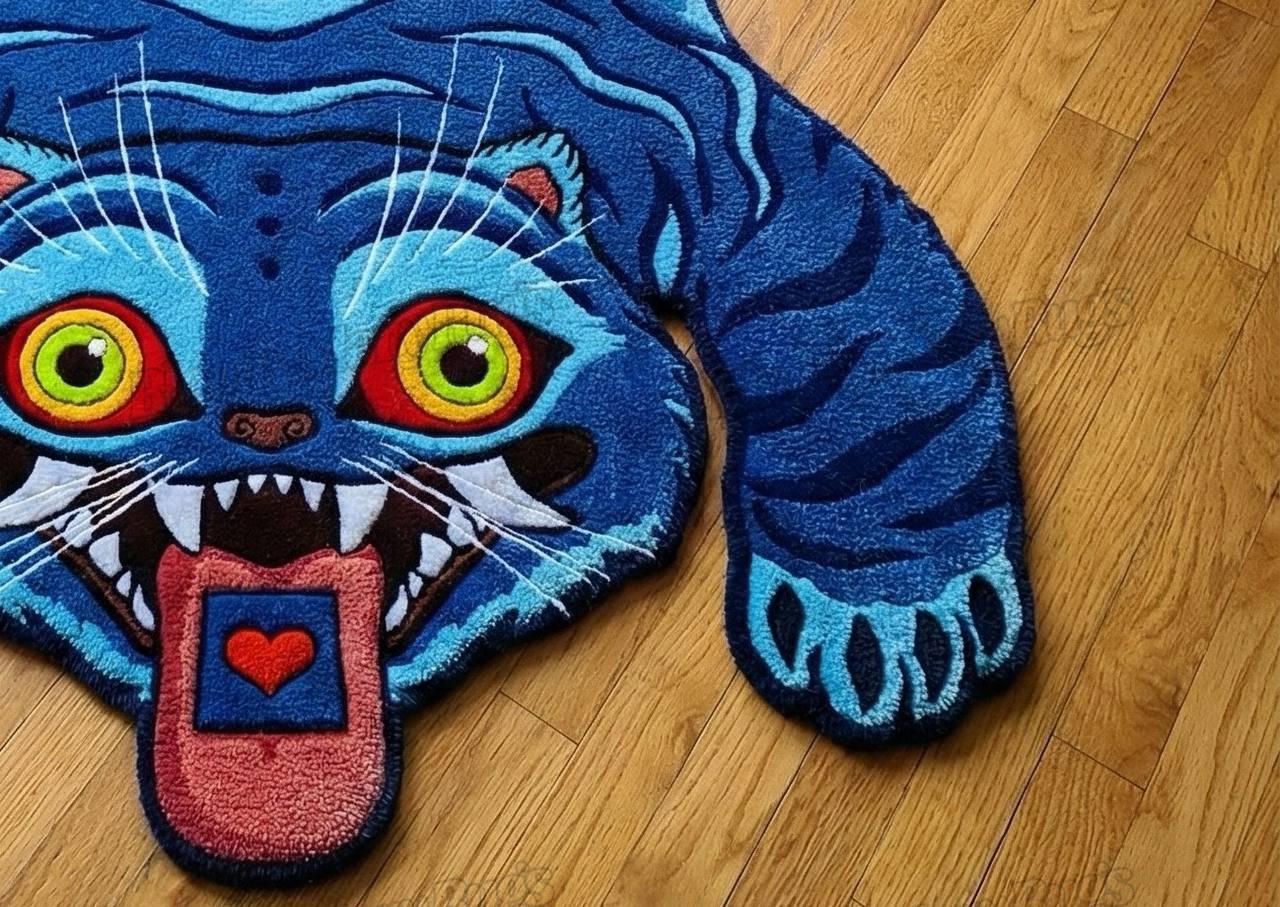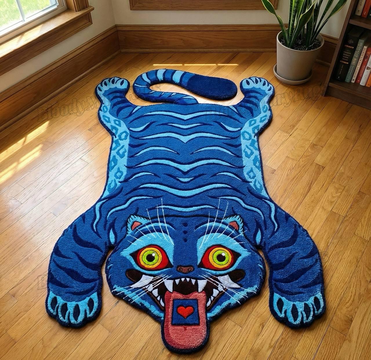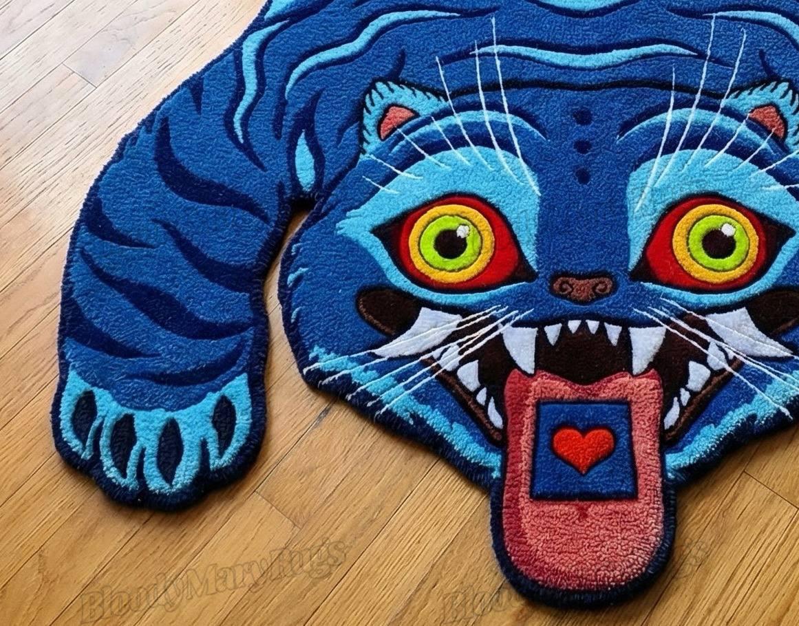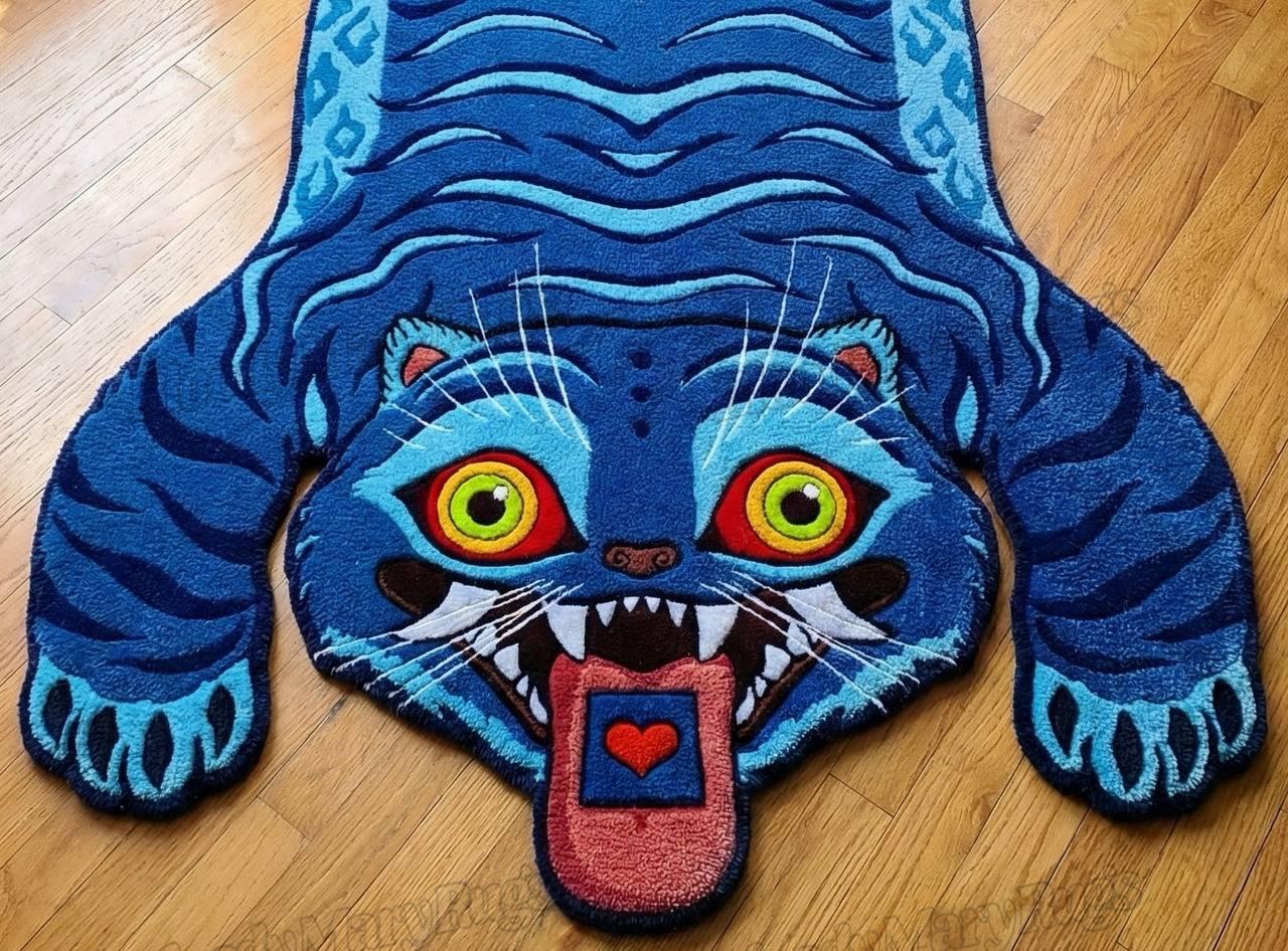 Bring bold personality into your space with the handcrafted Blue Tiger Spirit Rug a striking statement piece that blends comfort, art, and urban style. Soft, durable, and designed to stand out.