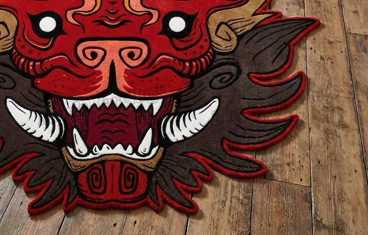 A sharp, high-impact hand-tufted rug built for interiors that don’t play it safe. The artwork delivers strong visual authority with bold reds, deep shadow tones, and a sculpted silhouette that instantly becomes the focal point of any room. This piece is designed for spaces where the rug isn’t just part of the décor it defines the attitude of the room.