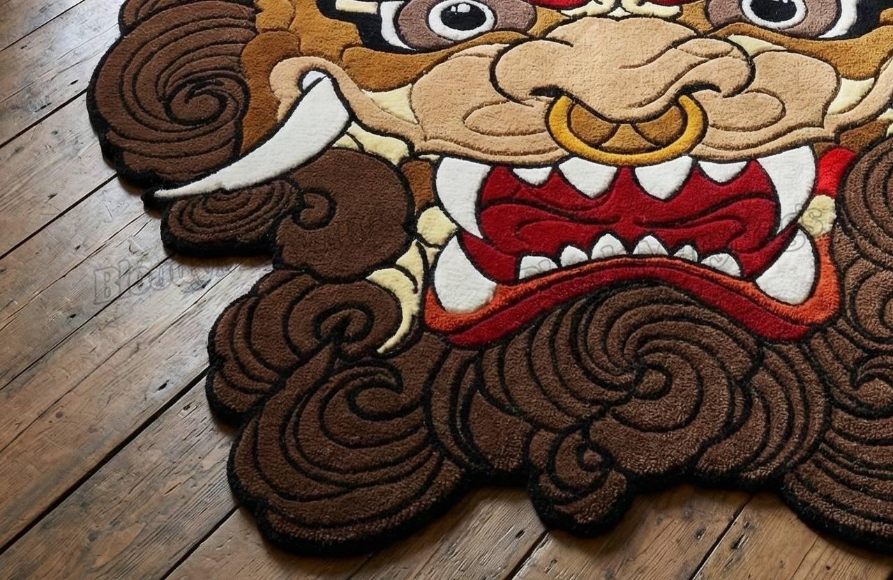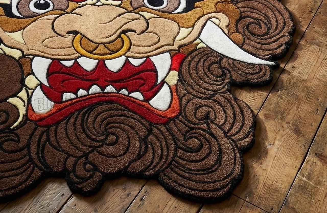 The pile is plush and tightly packed, offering both comfort and durability. Edges are cut to the shape of the design rather than a standard rectangle, which gives the rug a more custom, studio-made appearance. The surface holds color well under natural and indoor lighting, and the texture is built to stay consistent over years of everyday use.